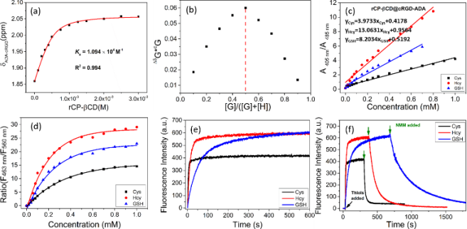 图4. rCP-βCD@cRGD-ADA超分子组装体对生物硫醇的检测性能