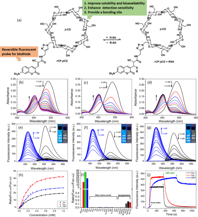 图3. rCP-βCD衍生物对生物硫醇的检测性能