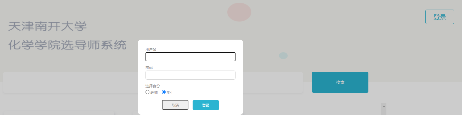 点击首页右上角登录按钮,页面会弹出登录窗口,这时可以输入用户名和密码并选择“员工”类型进行登录。员工的用户名和密码均为:学号
