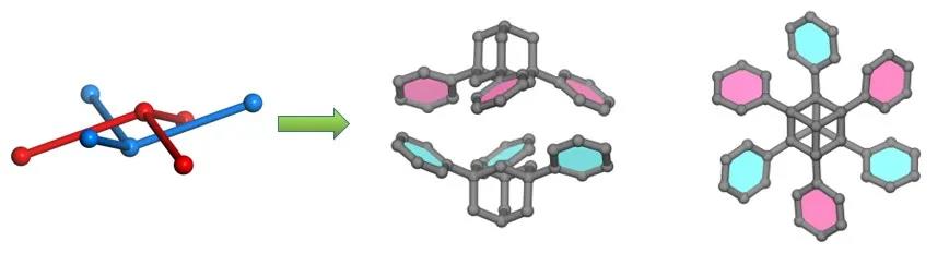 图2. 由两个1,3,5-三苯基金刚烷分子上下相扣形成的“up-down”型二聚超分子合成基元