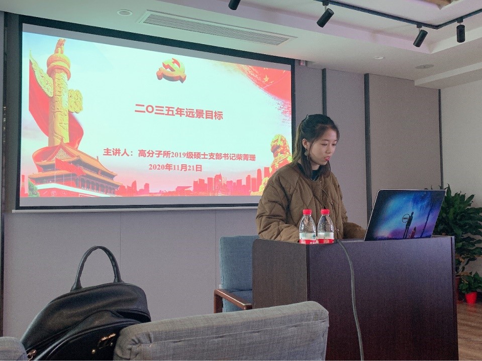 随后,无机研究生二支部书记张国庆带领大家学习了党的十九届五中全会内容及精神,他提到“我们是中华民族伟大复兴的接力者,在这场向着梦想的征程中,将以我之青春,共中国之荣光”。元素所2019级硕士生党支部书记杜逢涣讲解了“十四五”规划的主要内容及其重要意义,指出2020年是中华民族历史上的关键节点,“十三五”收官在即,全面建成小康社会胜利在望,党的十九届五中全会颁布的《中共中央关于制定国民经济和社会发展第十四个五年规划和二〇三五年远景目标的建议》是开启全面建设社会主义现代化国家新征程的宏伟蓝图。高分子所2019级硕士生党支部书记柴菁珊详细介绍了二〇三五年远景目标的具体内容与实现路径,提出把“十四五”和二〇三五远景目标统筹考虑,有利于明确前进方向,凝聚社会共识,把短期、中期、长期发展目标衔接协调统一起来,增强战略一致性。