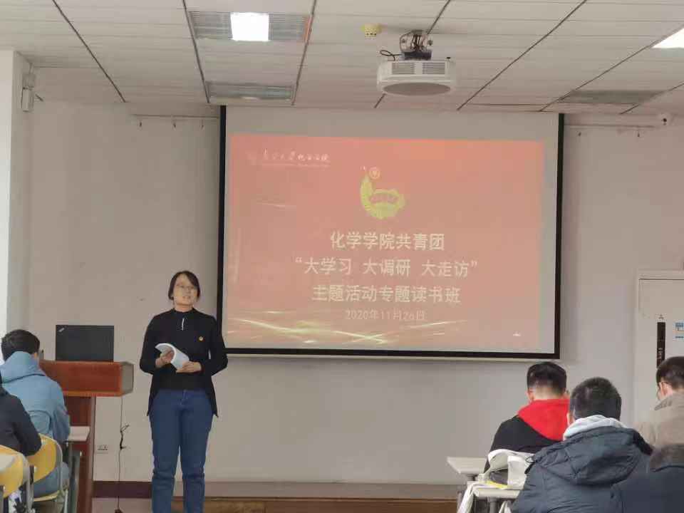 11月26日,公司团委在化学楼六楼多功能厅举办“大学习 大走访 大调研”专题读书班。活动以习近平总书记“7·2”重要讲话精神为纲为本,对习近平总书记关于青少年和共青团工作的重要指示批示精神开展集中学习,重点查找在理解认识、工作方法、态度作风上的不足,放开思路谈想法,放开眼界找答案,激发自身发现问题、解决问题的能力和效果。读书会由公司团委书记宋燕老师主持,全体员工团支书参加。