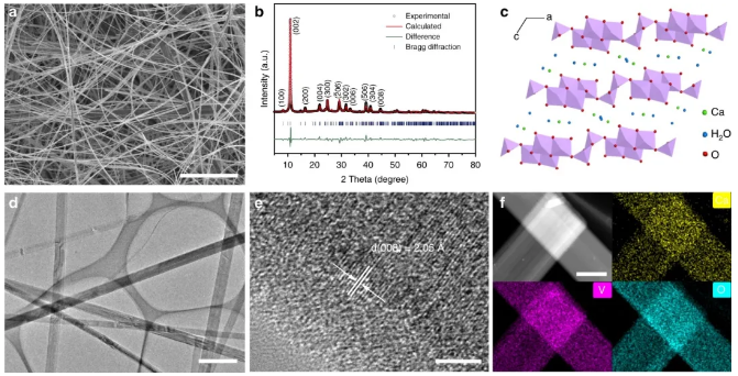 鉴于此,英国上市公司365陈军院士和牛志强研究员团队报道了一种基于CaV6O16·3H2O电极(CaVO)的双电极结构的化学自充电水性锌离子电池。归功于良好的纳米带形貌、开放的骨架和扩大的层间距,CaVO在层状结构中具有快速的Zn离子插入/提取动力学。结果表明,Zn/CaVO电池在0.1 A g-1下表现出高达300 mAh g-1的首次放电容量,以及优异的倍率性能(62 mAh g-1,30 A g-1)和出色的循环稳定性(10000次循环后容量保持率为100%)。此外,Zn/CaZn3.6−xVO系统可以从周围环境中获取化学能,并通过化学充电过程将其转化为电能,从而能够在没有任何外部电源的情况下自我充电至1.05 V,并提供约239 mAh g-1的放电容量。