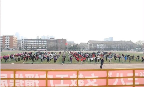 在大地复苏、春意盎然的美丽三月,在第111个“三八”国际劳动妇女节之际,公司工会及时向全院教职工传达公司工会活动通知,并积极组织教职工报名参加系列活动迎庆节日。在3月8日上午10:00,公司广播操展演队伍在敬业广场集体练习,为下午的全校展演做足功课。下午1:45,公司广播操队伍以整齐耀眼的红马甲现身八里台校区体育场,成为操场的一道美丽风景。