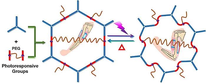 图2. PEG-COFs的制备策略及“人工肌肉”应用示意。
