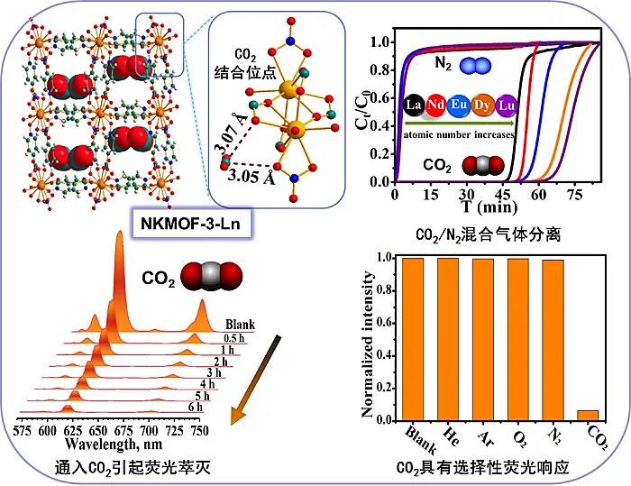 图7. 可特异性识别和检测CO2的NKMOF-3智能荧光传感器