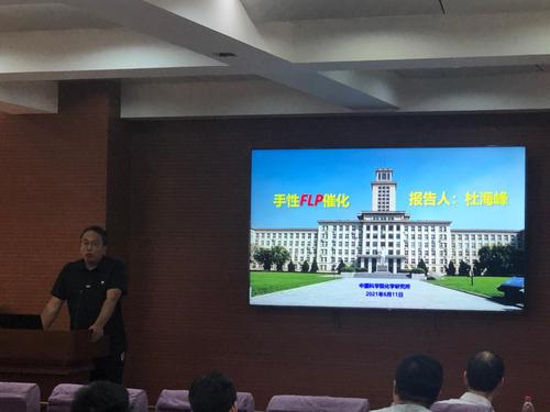 杜海峰研究员和钟羽武研究员分别向同学们介绍了“手性FLP催化”和“捕光能量转移分子晶体”的研究方向、最新成果及未来发展等。