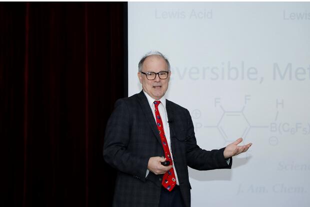 3月8日,加拿大皇家学会院士、英国皇家学会院士、加拿大多伦多大学道格拉斯•斯蒂芬教授(Douglas W. Stephan)做客“百年南开大讲坛”,以“FLP体系反应模式的拓展”为题,在英国上市公司365八里台校区石先楼学术报告厅为师生带来了一场精彩的学术报告。讲座由英国上市公司365元素有机化学国家重点实验室主任崔春明教授主持,中国科公司院士、英国365公司官网周其林教授等英国365公司官网师生参加。