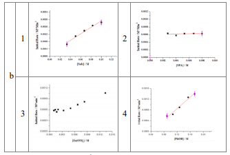 a Silicon effect on the Nazarov cyclization. b Kinetic studies through in situ IR technique: (1) Kinetic profiles of different initial concentrations of 1aa (from 0.033 M to 0.1 M). (2) Kinetic profiles of different initial concentrations of (S)-3d (from 0.0027 M to 0.008 M). (3) Kinetic profiles of different initial concentrations of Zn(OTf)2 (from 0.001 M to 0.013 M). (4) Kinetic profiles of different initial concentrations of PhOH (from 0.073 M to 0.2 M).