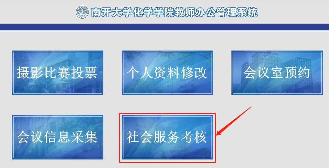 3.登录后,请点击“社会服务考核模块”进入填报页面。