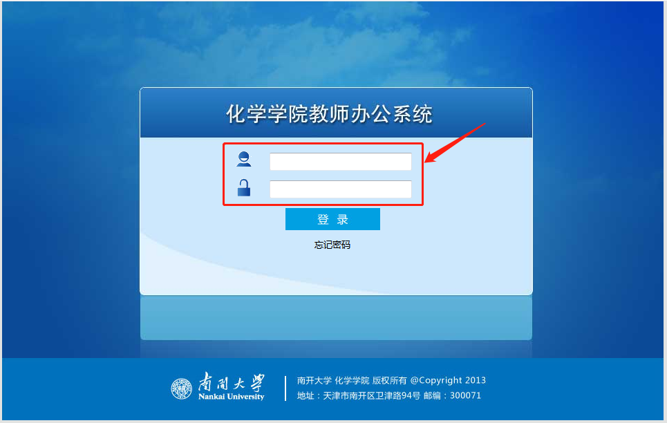 2.进入登录界面,与教师绩效考核系统登录方式相同,填写用户名和密码进行登录,用户名为教师本人的职工号(即一卡通号),若忘记密码,请登录首页中的“忘记密码”,按其引导即可解决。