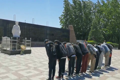 5月8日上午,一行人抵达宁河烈士陵园,首先在烈士纪念碑前敬献花篮,鞠躬默哀致以我们诚挚的敬意,随后在讲解员的带领下参观方舟烈士纪念馆。馆内陈列着于方舟生前读过的书籍,撰写的文章、诗文等,再现了他参与组建天津共产党组织、开展员工运动、领导农民暴动等重要革命活动的历史画面。聆听着于方舟等先烈的英雄事迹,看着前辈遗留下来的历史图片和革命文献,大家亲身感受到了革命先烈为中华民族伟大复兴的崛起走过的艰难历程。透过彭真、邓颖超等老一辈革命家为于方舟的题词,李瑞环、顾秀莲等党和国家领导人对于方舟的题词,大家更加体会了生者对逝者、对为党为国为民族的捐躯者的缅怀与崇敬之情。