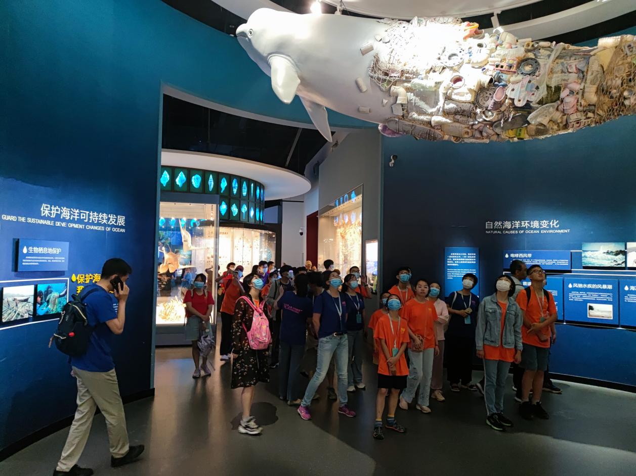 7月9日,营员们来到有着“海洋上的故宫”之称的国家海洋博物馆。在“远古海洋”展厅通过参观珍贵的岩石、化石了解到了地球、海洋和生命的演化过程;在“现代海洋”展区,丰富多彩的标本展现了地球海洋、生命海洋、海洋环境与可持续发展等内容。