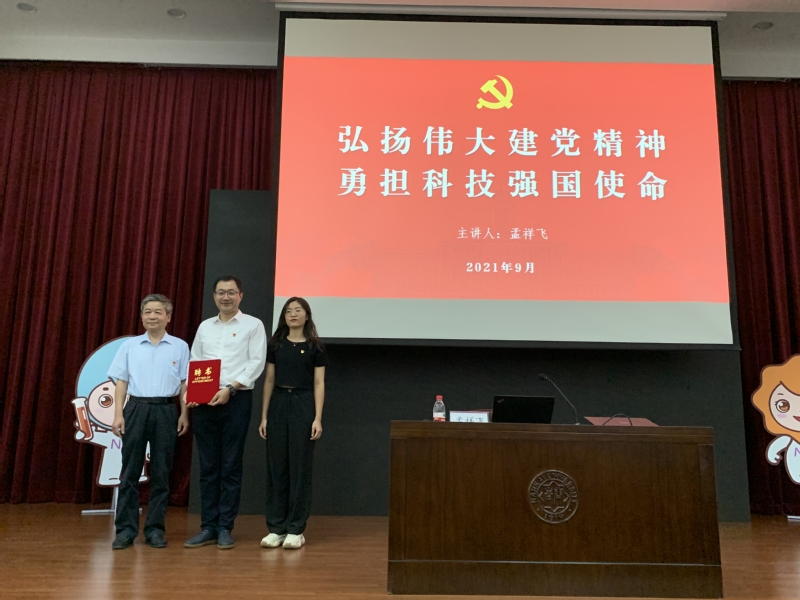 报告聚焦弘扬伟大建党精神,勇担科技强国使命。孟祥飞结合自身经历讲诉了我国“天河”系列超级计算机的发展历程。十多年前,孟祥飞由南开公派出国留学深造,深感国内外超算领域的差距。初心难忘,回国后的他得知国家超算天津中心组建的消息,毅然选择加入。不到一年的时间,孟祥飞和同事们就完成了机房建设和“天河一号”的安装调试。随后“天河一号”问鼎全球超算桂冠。孟祥飞描述道:“天河超级计算机是中国的‘争气机’,是‘国之重器’。中国科技工作者有卓越的能力,为世界科技进步做出重大贡献”。孟祥飞的经历鼓舞着各位青年党员学子,自觉担负起民族复兴的伟大使命,为实现我国科技自立自强贡献智慧和力量。