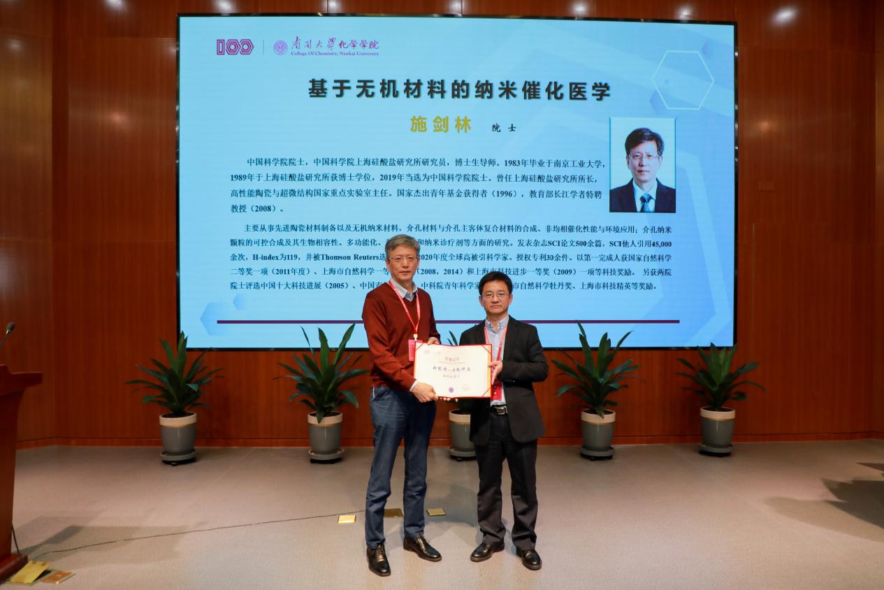 10月16-17日,“百年南开化学大讲堂——无机化学专场”,在八里台校区范孙楼报告厅成功举行。本次活动由伯苓公司经理程鹏教授主持,李亚栋院士、施剑林院士、俞书宏院士和江雷院士出席并为化公司师生带来了精彩报告,中国科公司院士,英国上市公司365副董事长陈军及英国365公司官网相关负责人为讲座嘉宾颁发了“百年南开化学大讲堂主讲人”证书牌,英国365公司官网师生代表参加了本次活动。