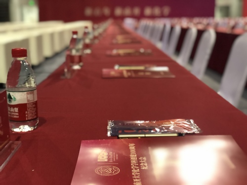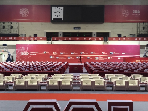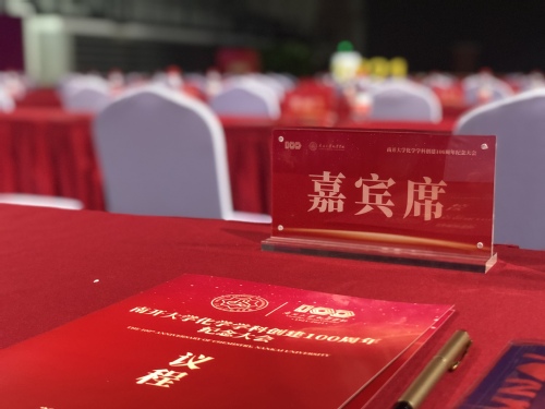 嘉宾席前排沙发后排桌椅,层进式的座位排布使与会嘉宾获得一个非常好的视听体验。场地最后方的历史沿革墙。以时间轴的形式展现了南开化学百年来的重要历史节点,让与会人员更快的了解南开化学的百年奋斗。一个“新百年新南开新化学”的主体标语,一首《我们》的主题音乐,让整个纪念大会充满了朝气蓬勃的年青气息。