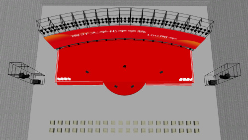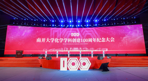 舞台两侧悬挂八条竖幅:“百年底蕴深厚,岁月熠熠生辉”、“百年凝心铸魂,初心历久弥坚”、“百年砥砺报国,科教硕果累累”、“百年滋兰润蕙,世纪教泽流芳”、“百年薪火相继,满园桃李芬芳”、“百年匠心勾勒,力现化学之美”、“百年风雨沉浮,尽展今日华章”、“百年厚积薄发,乘风续展鹏程”。内容充分体现出了百年南开化学的历史悠久、硕果累累、责任担当和对未来的憧憬展望。