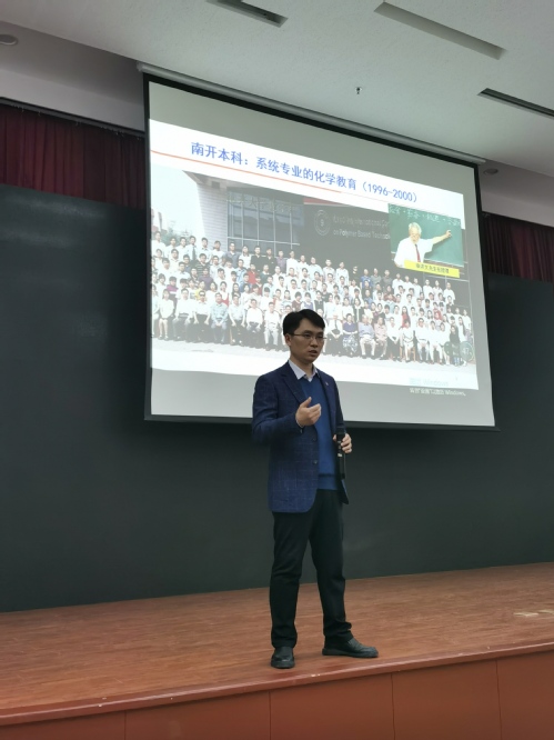 在个人发展层面上,守非经理回顾了自身的成长之路,分享了自己从初识化学、学习化学到爱上化学、投身教学科研的亲身经历,为同学们介绍了自己已取得的科研成果以及目前正在推进的科研项目,并展示了个人对未来的发展规划。