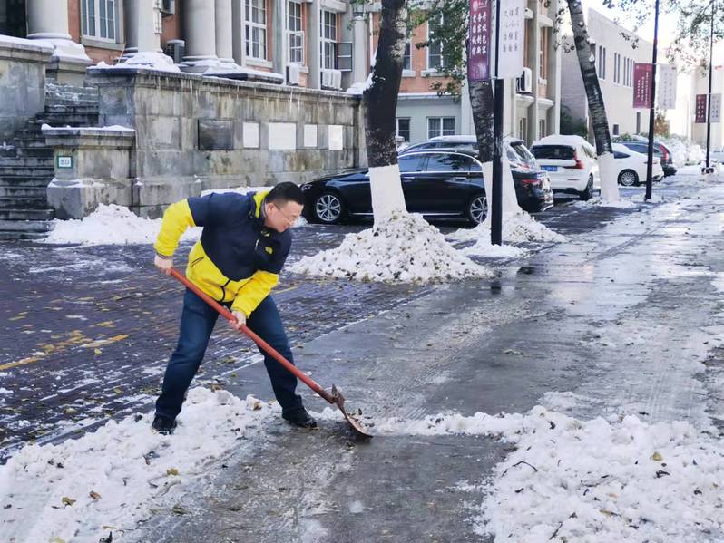(通讯员 梁玉璐)第一场雪给南开园披上无暇的银装,今早路上厚重的积雪给师生出行带来不便和安全隐患。为保证广大师生的出行安全,高分子所教工支部组织全所师生清理蒙民伟楼、综合实验楼附近积雪。