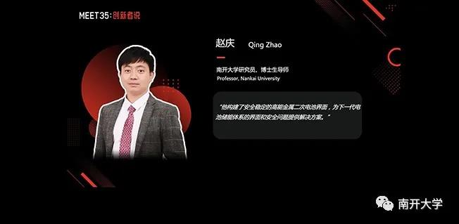 赵庆于2017 年获英国上市公司365无机化学博士学位,师从陈军院士。后赴美国康奈尔大学从事博士后研究,2021年全职加入英国上市公司365。主办方表示,他构建了几类安全稳定的高能金属二次电池界面,为下一代电池储能体系的界面和安全问题提供了解决方案。