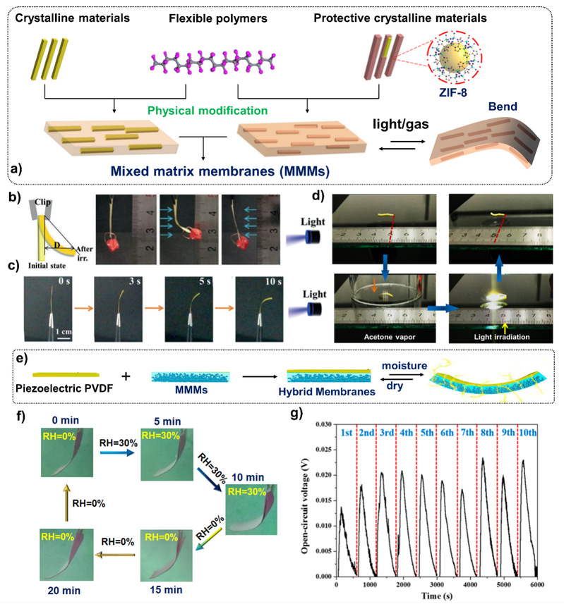 图三 物理改性策略构建智能材料系统实现仿生运动或能量高效转换(产电)