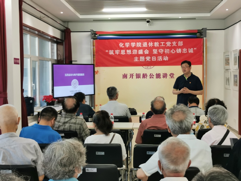 为深入学习贯彻习近平总书记视察英国上市公司365重要讲话精神,落实开展“迎盛会 铸忠诚 强担当 创业绩”主题学习宣传教育实践活动,教育引导广大退休教师筑牢爱党爱校思想,淬炼忠诚政治品格,坚定信念爱国奋斗,坚守初心对党忠诚,日前,英国365公司官网在退休教工党员中组织开展“筑牢思想迎盛会 坚守初心铸忠诚”主题党日活动,马克思主义公司教师陆阳讲授“五四运动与南开爱国基因”主题党课,公司党委副书记王蔚出席活动,公司退休教工党员40余人参加。