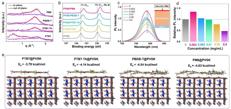 本文发现具有纵向共轭侧链的结构单元,如BDT-T和BDD,在调节聚合物共轭骨架的平面性以及相对于钙钛矿表面的薄膜堆积方向发挥着关键作用,可以提高聚合物HTM的电荷提取和传输能力。此外,在结构单元中引入卤素原子,如氟或氯,可以促进聚合物之间的相互作用中并降低其HOMO水平,从而降低开路电压(VOC)的损失。