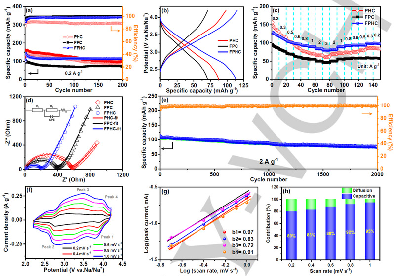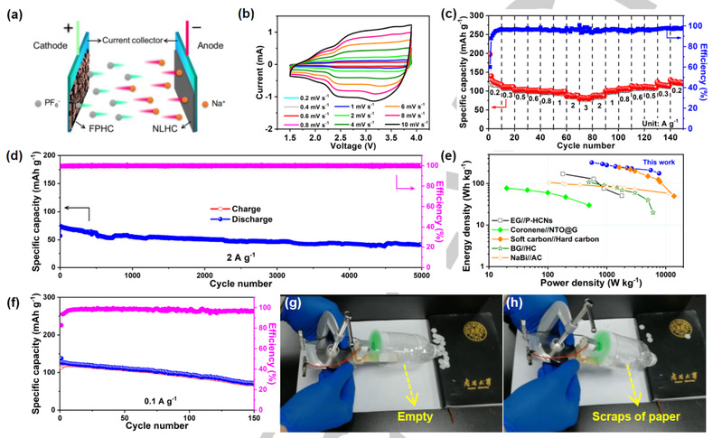 3. 当FPHC正极与类纳米硬碳(NLHC)负极结合时,SDIBs可以提供高能量/功率密度(310Wh kg-1/7720W kg-1),并以2 A g-1的高倍率稳定循环高达5000次。