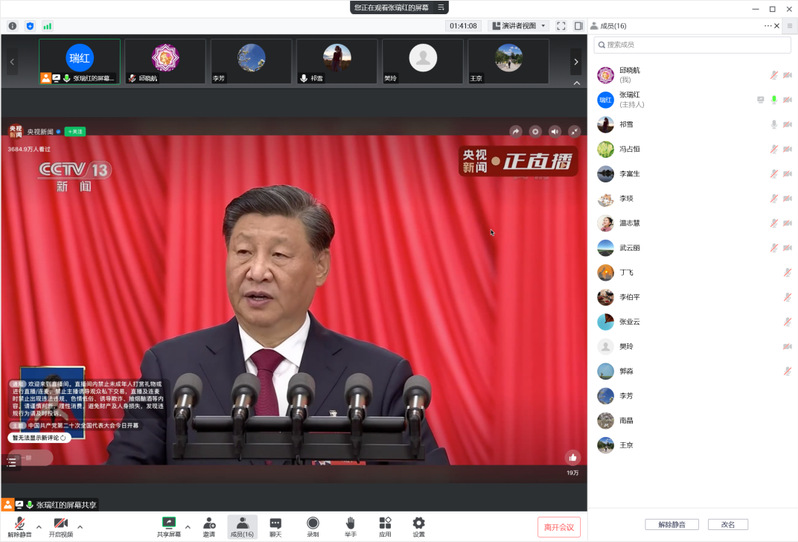 2022年10月16日上午10点,化学实验教学中心党支部采用线上腾讯会议形式,集体观看中国共产党第二十次全国代表大会开幕会并认真听取了大会报告。