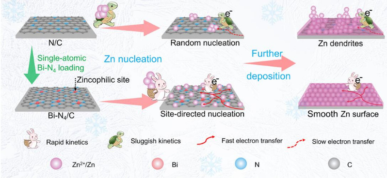 (i)Bi-N4位点可以作为形核种子,引导Zn沿面内方向形核和沉积;