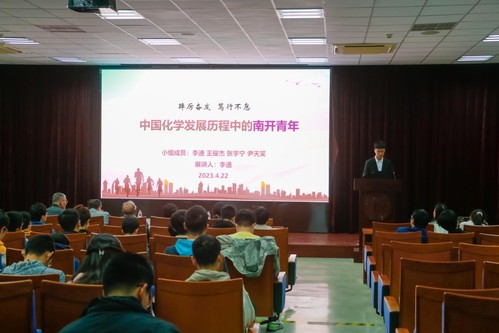 经过前期路演活动及视频作品投票预选,共有6组作品入围决赛。现场展示环节中,参赛选手们紧扣主题讲述化学学科的神奇魅力与中国化学发展的光辉历程。科普课程《点茶成墨》《化学中的颜色——染料与指示剂》科学与趣味并重;《矢志不移 国家为先》《仰止——学者楷模杨石先》表达了化学学子追忆科学先贤,传承杨石先精神的美好愿望;《中国化学发展历程中的南开青年》与《勇攀双碳之峰,南开化学在行动》将化学学子的青春奋斗与助力国家建设发展的责任使命紧密结合,展现了将“小我融入大我”的决心与信心。