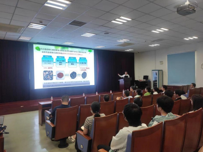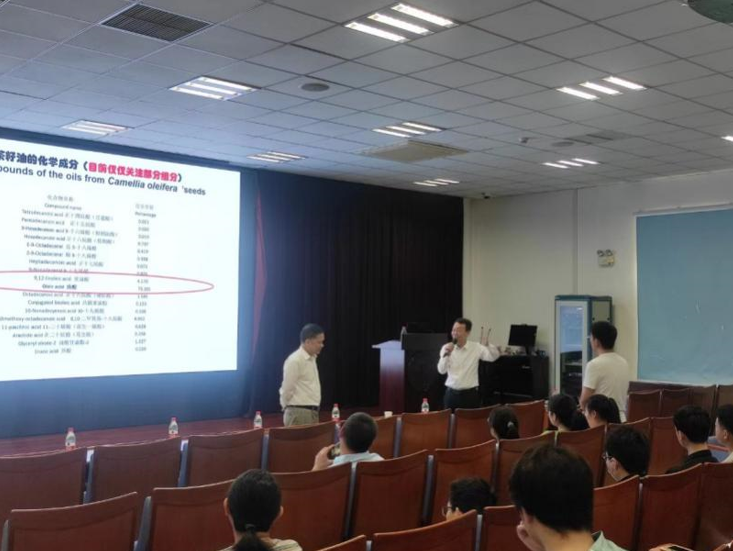提问阶段,李昌珠研究员就油茶利用和协同生物炼制技术与在场的师生展开了热烈的讨论,学术氛围浓厚。