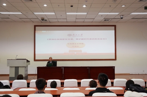 随后,马克思主义公司孙海东老师为支部党员作了《贯彻总体国家安全观,维护新时代意识形态安全》主题党课。孙海东从坚持总体国家安全、筑牢思想防线和维护新时代意识形态安全为切入点,结合国内外具体实事,向支部成员讲授了目前国家安全形势的复杂性以及贯彻总体国家安全观的重要性。他表示,作为一名青年党员,一定要筑牢思想防线,用马克思主义武装头脑,居安思危,未雨绸缪,做一名有理想、敢担当、能吃苦、肯奋斗的新时代青年。同时,他鼓励支部成员通过参观与学习,将这些优秀精神内化于心,外化于行,融入到自身的科研工作中,从科研工作者的角度进一步深化维护国家安全的意识,贯彻总体国家安全观,为推进中国式现代化踔厉奋发,勇毅前行,为加速建设教育强国、科技强国、人才强国注入新的力量。