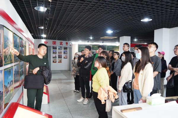 随后,无机研究生第一党支部党员来到武警指挥公司。在院史馆中,武警指挥公司政治工作处副主任贺晨晓向大家介绍了公司的发展历史,讲解了武警部队正规化管理与严肃的纪律要求,介绍了武警官兵严阵以待,听令而从,在捍卫国家安全等方面的诸多事迹。