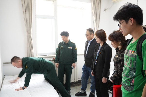 在学员一大队营区宿舍,学员队教导员王飞介绍了学员日常生活与单位党建工作情况,并与支部同学进行了深入交流。在交流中,支部成员纷纷表示此次参访激发了自己对保家卫国、投笔从戎的强烈兴趣,同时也深切感受到武警官兵坚决捍卫国家主权,全时待战,随时能战的坚定信仰和充分信心。
