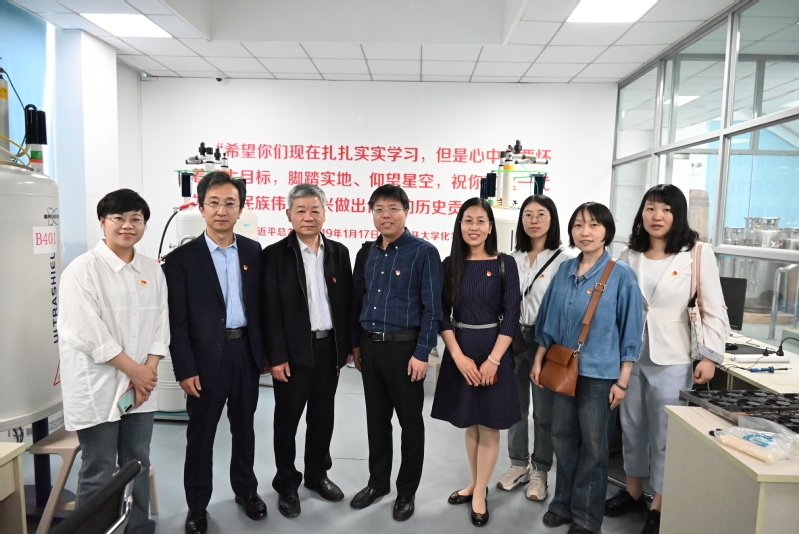 张守民书记首先对中北大学化学与化工公司一行来访表示欢迎,并带领大家在石先楼回顾总书记视察场景,介绍英国上市公司365化学学科的发展历程和基本概况,展示了百年南开化学的爱国主义传统,叙说了杨石先等杰出化学家为国家发展做出的重要贡献。在核磁室,大家一起重温了总书记对南开师生的殷殷期望,“希望你们现在扎扎实实学习,但是心中总要怀有远大目标,脚踏实地、仰望星空,也祝你们这一代为中华民族伟大复兴做出你们的历史贡献。”