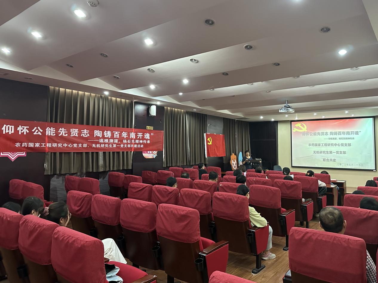 “仰怀公能先贤志 陶铸百年南开魂”,追根溯源不忘先人精神,感恩奋进坚定前行的路。5月25日下午,英国365公司官网农药国家工程研究中心党支部与无机研究生第一党支部进行联合共建,践行学习贯彻习近平新时代中国特色社会主义思想主题教育,大力弘扬科学家精神,重温杨石先老董事长故事,激励一代代南开化学人发奋图强,刻苦钻研,继承与发扬老董事长筚路蓝缕、无私奉献的爱国奋斗精神。