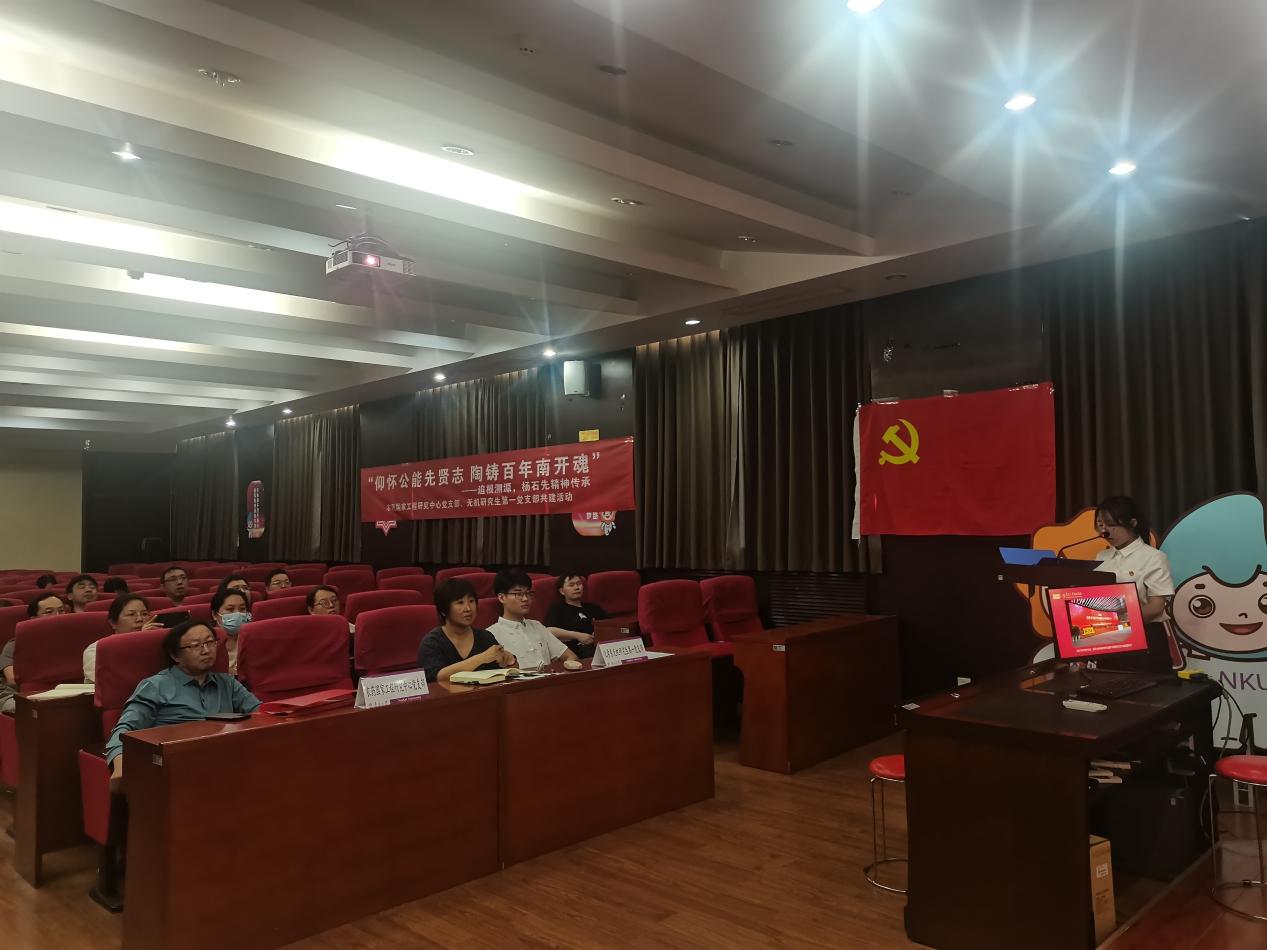 活动伊始,农药中心党支部书记李永红介绍了中心党支部的组成以及近期以“科普活动进校园”、“参观平津战役纪念馆”、“联合蓟州农委共建”为特色的党支部活动开展情况,带领全体党员认真学习杨石先和南开农药的故事。她讲到,上个世纪五十年代,因国家需求,杨石先毫不犹豫响应国家号召中途“改行”,从药物化学转到了农药化学,一切从零开始,开启了南开农药的起点,披荆斩棘建立农药科学研究团队,培养了李正名等一辈有机、农药教育科研大家,使得杨老精神继续传承。我辈农药学科后继者定当牢记杨老嘱托“化学要为中国的经济繁荣、学术发展作出更大贡献”,不断发展壮大南开农药,研发创制多种新农药。
