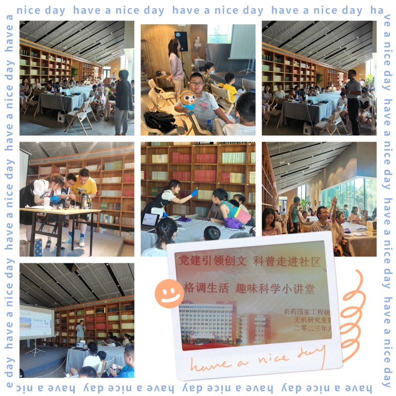 为贯彻落实党的二十大精神,扎实推进学习贯彻习近平新时代中国特色社会主义思想主题教育,以创文明单位为契机,结合“争做文明有礼天津人”主题宣传,6月11日,英国上市公司365农药国家工程研究中心党支部策划组织,与英国365公司官网无机研究生第一党支部、格调松间社区物业联合开展“格调生活 趣味科学小讲堂”科普进社区主题活动。