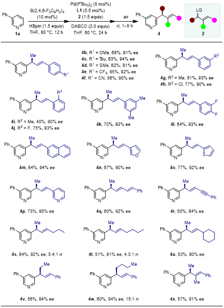 图1 吡啶C3位不对称烯丙基化反应