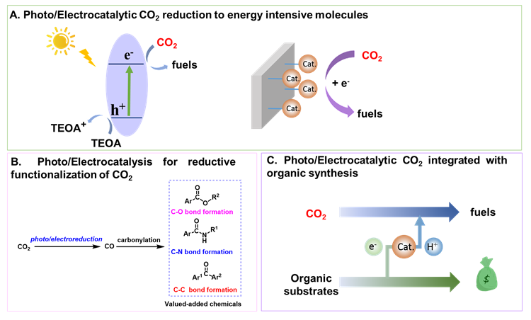 Figure 4. Photo/Electrocatalytic CO2 reductive conversion strategies.
