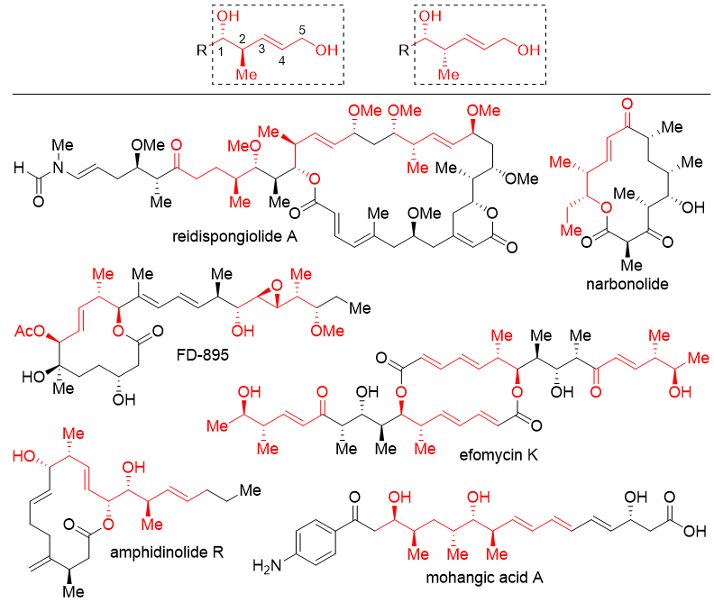 图1. 含有手性2-甲基-3-戊烯-1,5-二醇结构单元的天然产物。图片来源:J. Am. Chem. Soc.