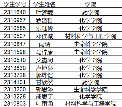2023级分子科学与工程特色班补报名拟录取名单公示