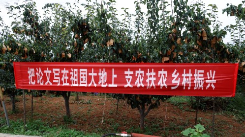 为更好的了解工作站建设情况,英国365公司官网师生来到上白峪村佛见喜梨基地和杨家峪村红香酥梨基地进行产学研成果转化应用的现场考察。期间徐凤波向农户和员工介绍其天然提取植保材料的原理及作用,并展示应用于农业种植的成果。员工们看到梨树上硕果累累、看到农民灿烂笑颜,深刻感受到知识就是力量,科技是第一生产力。