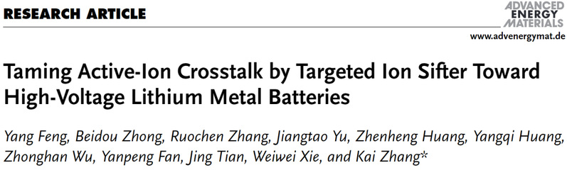 Taming Active-Ion Crosstalk by Targeted Ion Sifter towards High-Voltage Lithium Metal Batteries, Advanced Energy Materials, 2023.