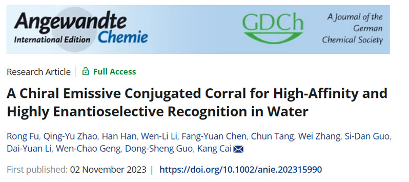 题目:A Chiral Emissive Conjugated Corral for High-Affinity and Highly Enantioselective Recognition in Water