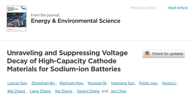 Unraveling and suppressing voltage decay of high-capacity cathode materials for sodium-ion batteries. Energy & Environmental Science, 2023.