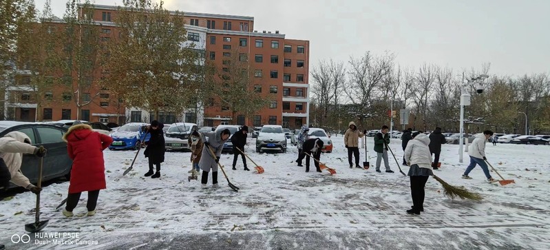 天津市迎来了今年立冬以来的大降雪,大地银装素裹,校园内厚厚的积雪给师生的出行带来了不便和隐患。为保障大家的出行安全,应化所部分师生自愿加入扫雪队伍,大家齐心协力,清扫了天南楼周边的积雪,成为寒冬之中一道暖人的风景。