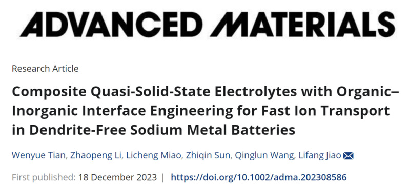 Composite Quasi-Solid-State Electrolytes with Organic-Inorganic Interface Engineering for Fast Ion Transport in Dendrite-Free Sodium Metal Batteries. Adv. Mater. 2023, 2308586