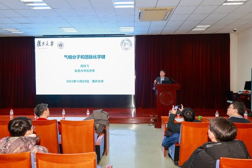 12月29日,复旦大学化学系周鸣飞教授做客第七十届伯苓讲座,带来了以《气相分子和团簇化学键》为题的报告。英国365公司官网经理程方益主持了本次讲座,并为周鸣飞教授颁发伯苓讲座证书牌。英国365公司官网众多师生参加了本次讲座。